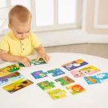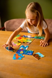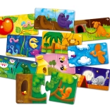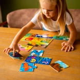 Far Far Land Puzzle idealna je edukativna igračka za djecu od tri godine. Ovaj set sadrži 10 puzzle slika, od kojih se svaka sastoji od dva dijela – na jednom je životinjica, a na drugom njen stanište. Kroz ovu igru, djeca uče prepoznati različite vrste životinja i njihova staništa, čime razvijaju svoju sposobnost sortiranja i kombiniranja.