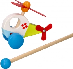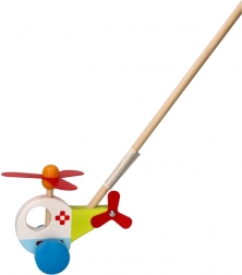Drveni helikopter s drškom od Gokija donosi puno zabave djeci koja tek uče hodati. Izrađen je od masivnog drva, što jamči dug vijek trajanja i sigurnost pri igri. Zahvaljujući šarenom dizajnu i pokretnim dijelovima, poput propelera i kotačića, zaintrigirat će svakog malog istraživača.
