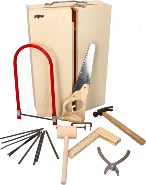Drveni radni stol za djecu s alatom i kutijom za alat