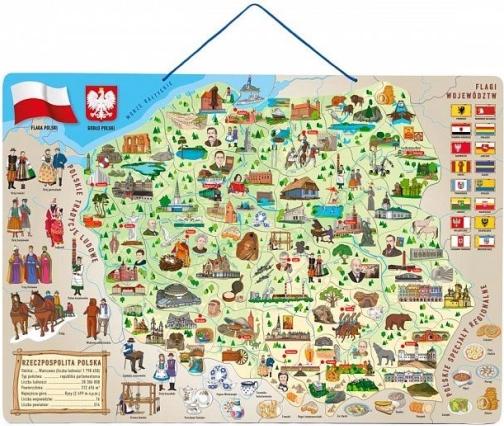 Karta ispunjava zahtjeve sigurnosti igračaka (CE). Zahvaljujući kvalitetnoj izradi i atraktivnom dizajnu, izvrsna je pomoć pri prvom upoznavanju s geografijom Poljske.