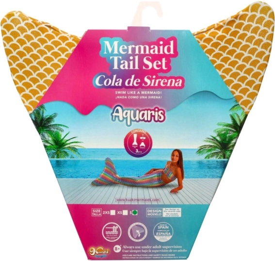 Uz set peraje i bikinija Aquaris Sunny vaše će dijete doživjeti pravu podmorsku avanturu! Ovaj kostim osmišljen je s naglaskom na sigurnost i udobnost djece, no preporučuje se korištenje pod nadzorom odrasle osobe. Dostupne su tri veličine: 2XS, XS i S kako bi svako dijete moglo pronaći svoju pravu mjeru.