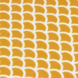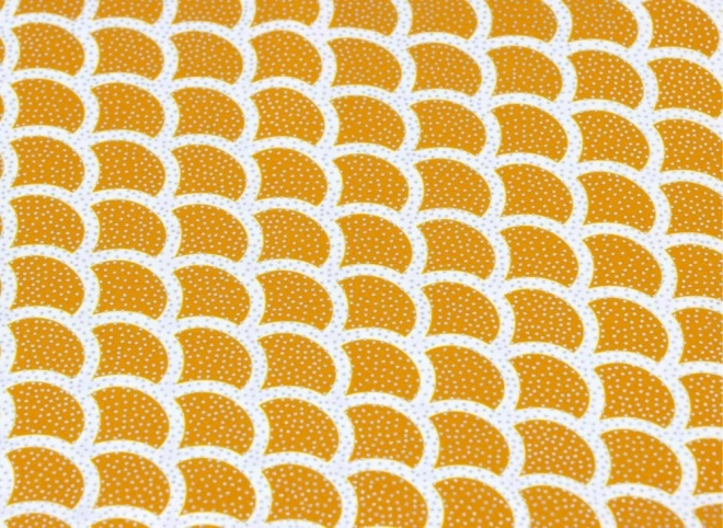 Upotrijebljeni materijal dizajniran je da izdrži uobičajeno trošenje i habanje. Uzorak s narančastim polukrugovima i bijelim točkicama na bijeloj pozadini daje peraji elegantan vizualni dojam.