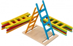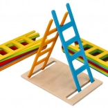 Jedinstvena drvena konstrukcija nudi raznoliku i vizualno zanimljivu igru. Šareni ljestvići u živim nijansama žute, plave, crvene, zelene i narančaste potiču kreativnu igru.