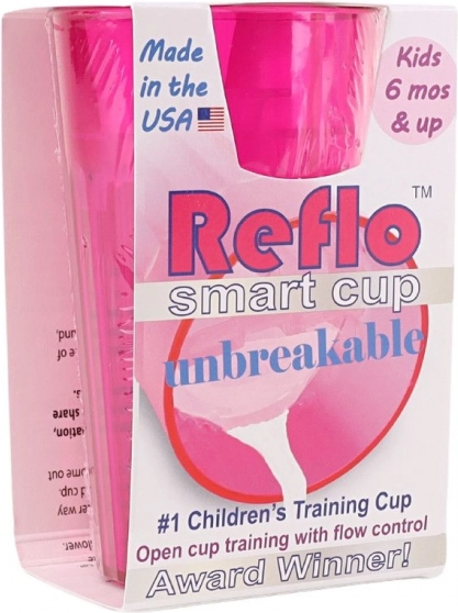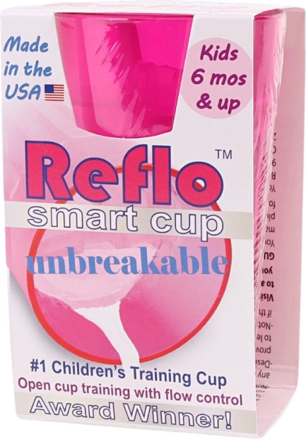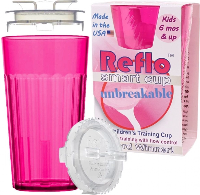 Ružičasta trenirna čaša Reflo pomaže djeci od 6 mjeseci sigurno savladati pijenje iz otvorene čaše. Zahvaljujući regulaciji protoka smanjuje prolijevanje, nepolomljivo izvedenje idealno je za dom i putovanja, a kompaktan volumen 170 ml savršeno pristaje dječjoj ruci. Proizvedeno u SAD-u, ispunjava EN 14350.