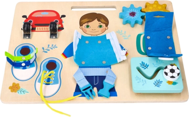 Ploča je u prirodnim nijansama drva i predstavlja cjelovit obrazovni alat koji razvija ključne vještine kroz fascinantnu igru.