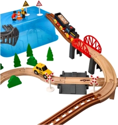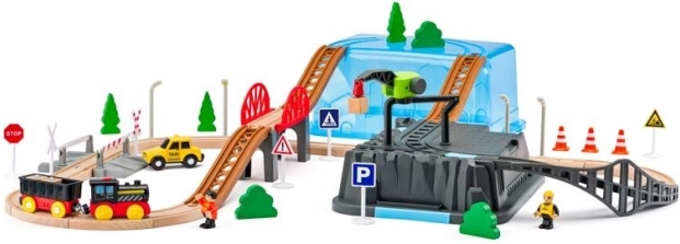 Ovaj dječji set željezničke pruge sa 63 dijela nudi nebrojene mogućnosti za kreativnu igru. Set je idealan za razvoj motornih vještina i mašte djece. Sadrži šarene vlakove, mostove, drveće, prometne znakove i druge dodatke koji donose realistične elemente u igru.