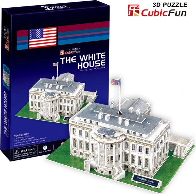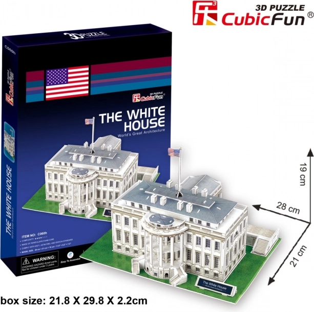 Sastavite kultnu Bijelu kuću kao realistične 3D puzzle brenda CUBICFUN. 64 dijela od čvrste pjene s tiskanim laminatom lako se slažu bez ljepila i škara. Težina 4/7, vrijeme izrade 150–180 minuta. Sjajan poklon, edukativna igra i stilna dekoracija.
