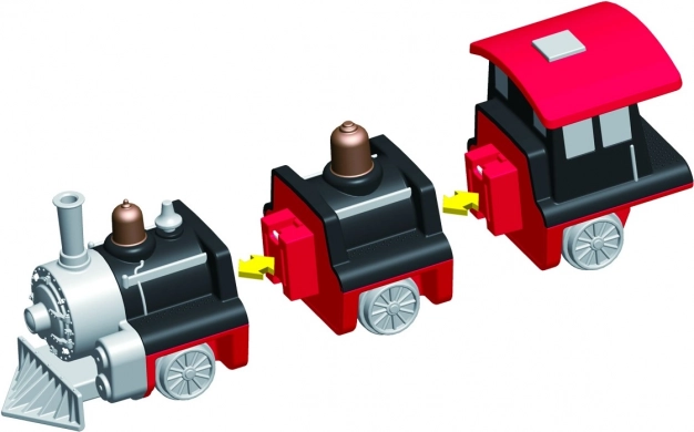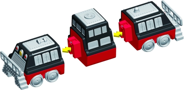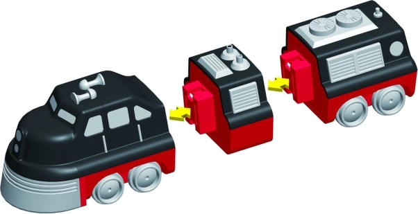 U pakiranju je 9 dijelova od kojih složite 3 pripremljena vlaka. Zamjenom modula stvorit ćete desetke originalnih varijanti bez ograničenja mašte.