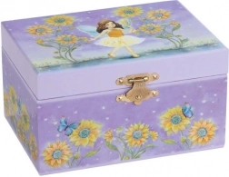 Ova kutijica za nakit u stilu klasične glazbene kutije razveselit će svako dijete koje želi svoje dragocjenosti čuvati s elegancijom. Nakon otvaranja poklopca zazvuči nježna melodija iz opere Labuđe jezero, a mala okretna balerina zapleše pred ugrađenim zrcalom. Motiv suncokreta daje kutijici razigran, a istovremeno suptilan izgled.