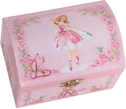 Ova kutija za nakit u tradicionalnom stilu glazbene kutije prekrasan je dodatak dječjoj sobi. Po otvaranju poklopca zazvuči očaravajući motiv iz Labuđeg jezera, a mala balerina zapleše pred svojim ogledalom. Dizajn s baletnom tematikom potiče ljubav prema glazbi i estetici.