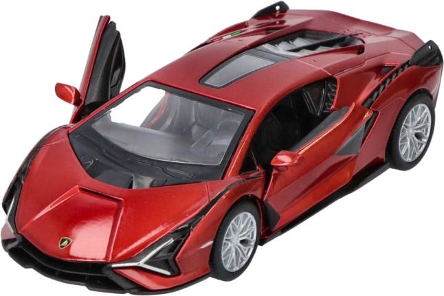 Stilizan metalni model vozila Lamborghini Sian pruža mnogo zabave djeci i kolekcionarima. Ima otvarajuća vrata, inercijski pull-back pogon i gumene kotače za bolje vozne osobine. Dostupan u četiri boje – maslinastoj, crvenoj, tirkiznoj i narančastoj.