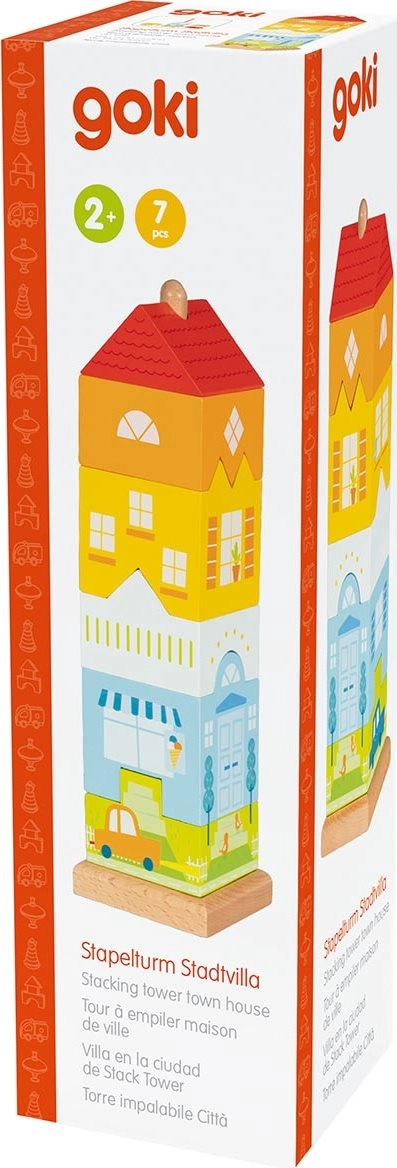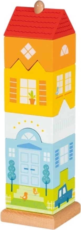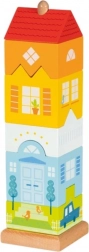 Ovdje je tipična gradska kuća. Set se sastoji od šarenih blokova, od kojih je svaki drugačiji i svaki se nastavlja na prethodni blok na pomalo drugačiji način. Ova gradska kuća sastoji se od 6 blokova i postolja. Kolac je pričvršćen na uzicu. Svaki sljedeći blok je drugi kat i drugi blok.