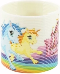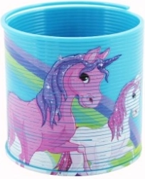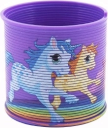Zabavna plastična spiralna opruga s motivom jednoroga razveselit će djecu i odrasle. Zahvaljujući elastičnoj konstrukciji zna „hodati” niz stepenice, izvoditi trikove i odličan je sredstvo za smanjenje stresa. Kompaktna veličina promjer 6,5 cm i žive boje čine je idealnim poklonom za djecu od 3 godine naviše.