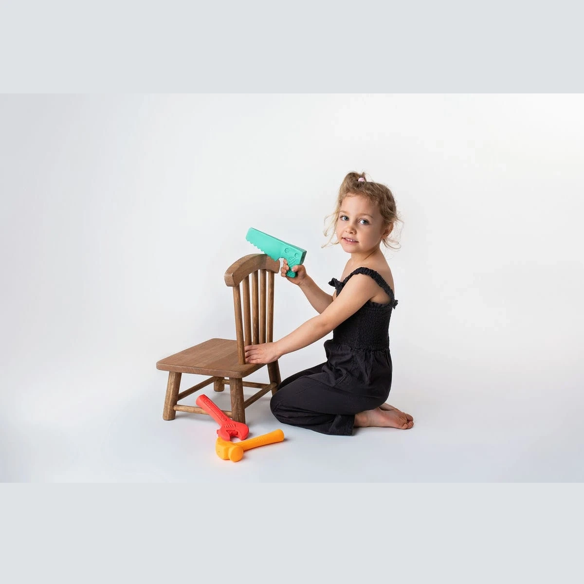 Pila, čekić i ključ u pastelnim bojama potiču maštu, uče nazive i funkcije alata te podržavaju samostalnost.