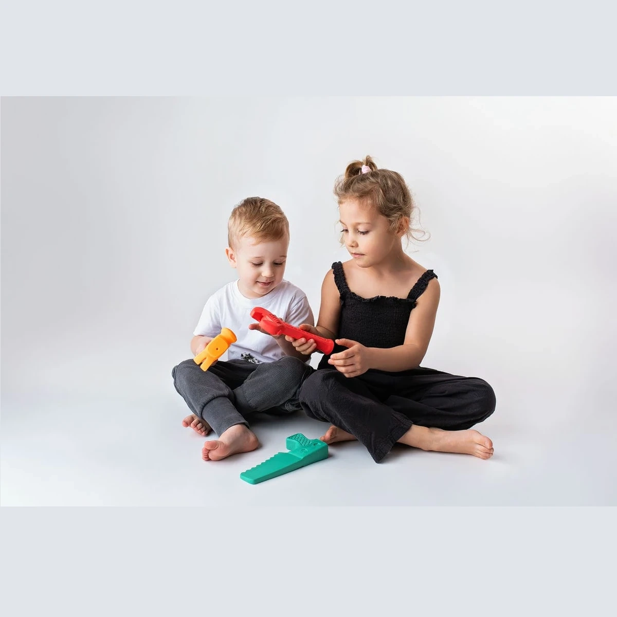 Otkrijte razigrani set od tri mekana alata – pile, čekića i ključa – osmišljen za sigurnu igru i razvoj vještina. Zahvaljujući mekom materijalu, teksturama i pastelnim bojama, potiče razvoj fine motorike, osjetilnu percepciju i koordinaciju oko–ruka. Alati su lagani, fleksibilni i sigurni čak i za najmlađu djecu.