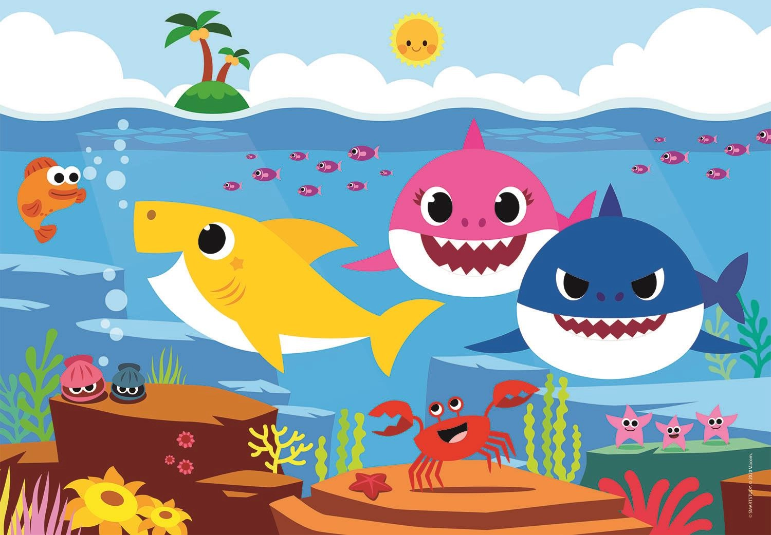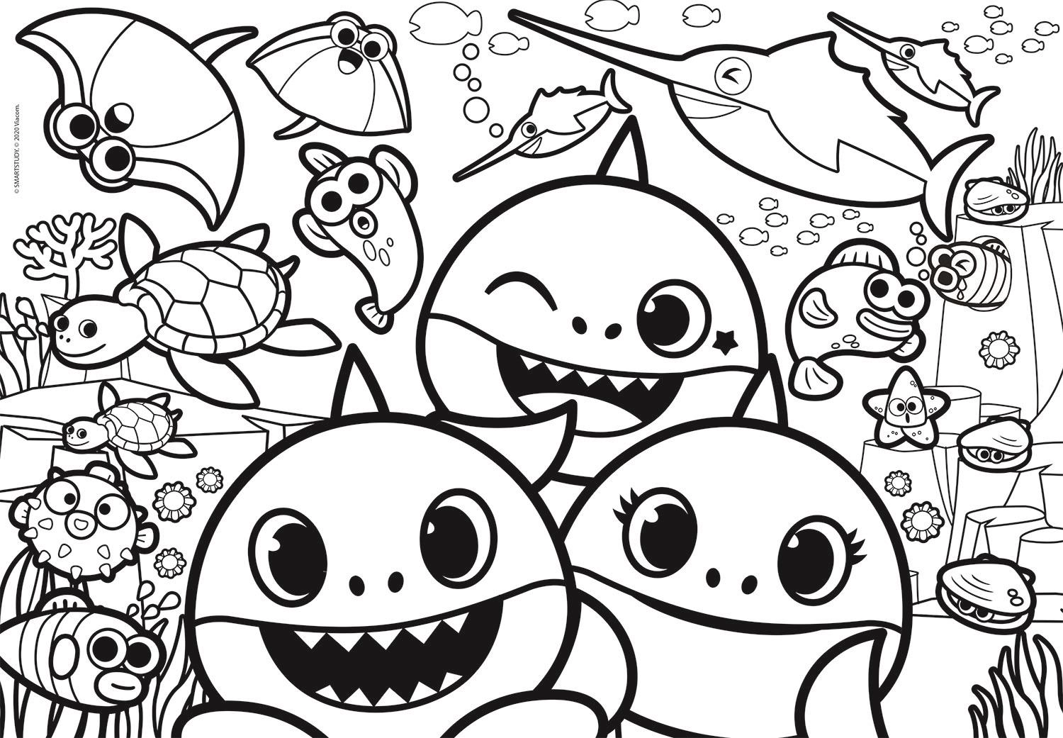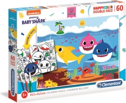 Otkrijte kreativnu igru koja će djecu zabaviti na duge sate. Dvostrana slagalica BABY SHARK donosi šareni motiv omiljenih morskih likova s jedne strane i crno-bijelu bojanku s druge. Tako djeca ne samo vježbaju slaganje, nego i mogu dovršiti sliku prema vlastitoj mašti.