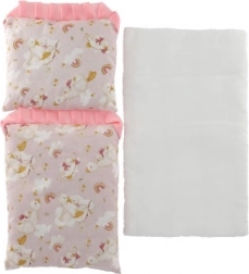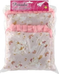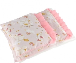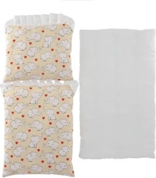 Praktičan set za lutke sadrži sve potrebno za udoban san: mekani poplun, pufnasti jastučić i podlogu. Zahvaljujući nježnim materijalima i veselim motivima uklapa se u svaku dječju sobu te potiče razvoj mašte i igranje uloga.