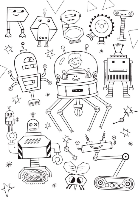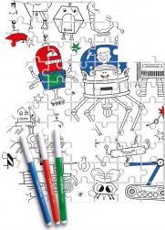 Jedna strana klasična slagalica s motivom robota, druga pripremljena za bojanje – idealna kombinacija za kreativnu igru.