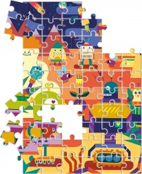 Dvostrana slagalica CLEMENTONI Roboti nudi djeci dvostruku dozu zabave: najprije slože motiv pun veselih robota, a zatim drugu stranu mogu sami obojiti. Kvalitetni materijali i ekskluzivan tisak jamče dugotrajno žive boje i otpornost čak i pri čestoj upotrebi.