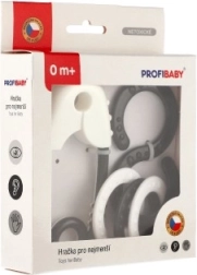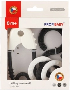Set crno-bijelih zvečka, idealan za stimulaciju vida i sluha male djece. Savršena veličina za dječje ruke.
