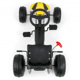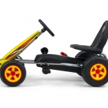 Dječji pedali gokart VIPER dizajniran je s obzirom na sigurnost i udobnost. Zahvaljujući velikim pjenastim kotačima s obojenim naplacima, djeca mogu uživati u glatkoj vožnji čak i na neravnim površinama. Okvir je ojačan čeličnim potporama, a ručna kočnica osigurava sigurno zaustavljanje. Sjedalo je ergonomsko s dvostupanjskim podešavanjem udaljenosti od volana, što omogućuje rast s vašim djetetom. VIPER preporučujemo za djecu od 3 godine.