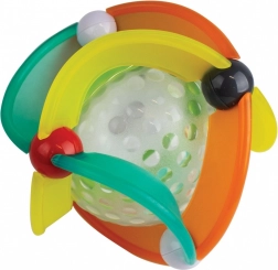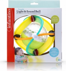 Infantino Svjetleća i zvučna kugla dizajnirana je za podršku senzoričkog i motoričkog razvoja djece. Prozirno jezgro kugle okruženo je mekanim gumenim izdancima i perlicama koje omogućuju lako hvatanje i manipulaciju dječjim rukama. Igračka je namijenjena djeci od 6 mjeseci i pomaže aktivno razvijati njihovu senzoričku percepciju.