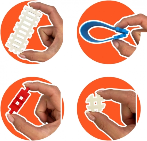 Siguran, ugodan i blago elastičan materijal prija na dodir i odolijeva svakodnevnoj igri. Set je smješten u čvrstu kartonsku kutiju, sadrži upute za početnu inspiraciju te posebnu vrećicu za pranje u perilici posuđa, kako bi kockice uvijek bile čiste. Odličan je za samostalnu i zajedničku dječju igru.