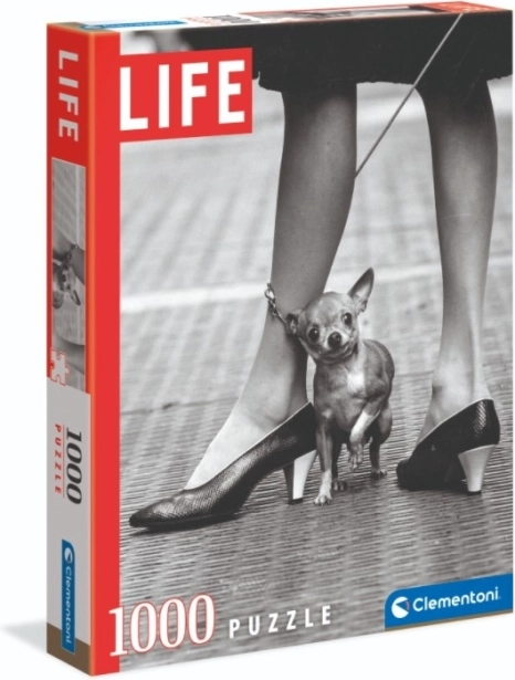 Otkrijte eleganciju i bezvremenski stil uz puzzle Chihuahua od Clementoni, koje prikazuju crno-bijelu fotografiju malog psa chihuahue koji je pronašao utočište kraj nogu žene. Ova slagalica iz kolekcije LIFE sastoji se od 1000 dijelova i idealna je za ljubitelje puzzli.
