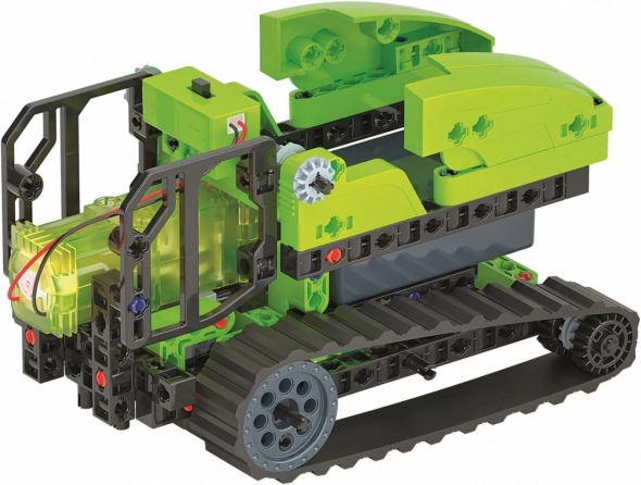 Otkrijte fascinantan svijet mehanike uz set za izradu gusjeničarskog traktora. S više od 200 dijelova možete sastaviti 20 različitih modela i istražiti tehničke primjene i funkcije ovog izvrsnog kompleta. Traktor je opremljen mehaničkim pogonskim sustavom za simulaciju stvarnih poljoprivrednih strojeva.