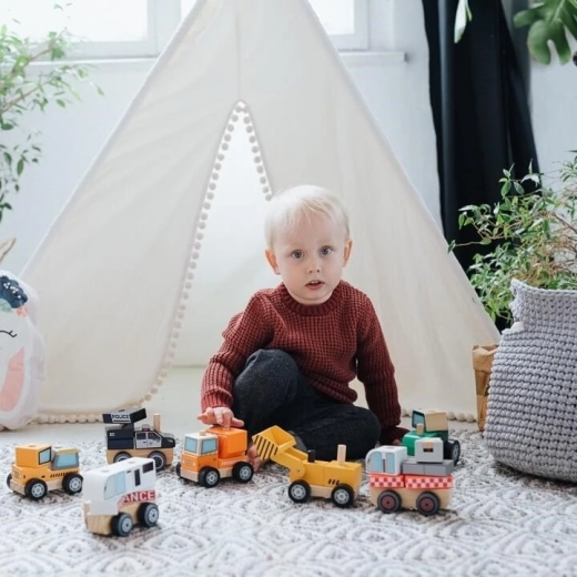 Igračka Hitna pomoć iz linije Drvene igračke jača hvatni refleks i uči preciznosti. Igračka potiče maštu i razvija koordinaciju oka i ruke. Ima pomične dijelove. Svi materijali korišteni za izradu igračke su certificirani i obojeni netoksičnim bojama. Igračka je prikladna za djecu od 12 mjeseci.