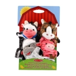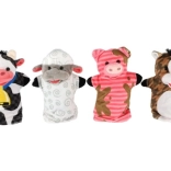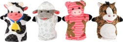 Set sadrži četiri lutke s farme: kravu, ovcu, praščića i konjića, idealno za stvaranje bajkovitih priča.