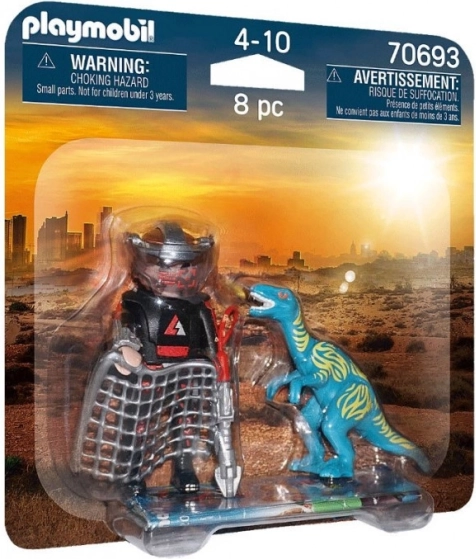Doživite akcijsku avanturu s PLAYMOBIL dvostrukim paketom, u kojem se lukavi zločinac pokušava uhvatiti velociraptora pomoću mreže. Dvije figurice s priborom donose dvostruku dozu zabave i potiču maštu i kreativnost djece od 4 godine naviše.