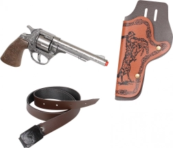 Uživajte u atmosferi Divljeg zapada s kvalitetnim metalnim revolverom marke GONHER. Realistična obrada, ugodna težina i pouzdan mehanizam za 8 metaka čine ovu igračku odličnim dodatkom za igre kauboja i Indijanaca te stilskim komadom za kolekciju.