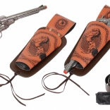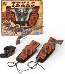 Stilski kovbojski set Gonher oduševit će male ljubitelje avanture. Dva robusna metalna revolvera s detaljnom izradom i futrole za pojas stvaraju vjeran izgled i dojam tijekom igre. Kompatibilnost s 8-metnim kapislama donosi realističan efekt pucnja i još više zabave.