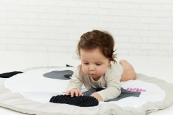 Senzorna igraća podloga Panda GAGAGU osmišljena je za udobnu i sigurnu igru već od prvih mjeseci. Zahvaljujući kontrastnim bojama, mekom punjenju i pomno odabranim materijalima pomaže razvijati vid, dodir i finu motoriku. Slatki dizajn pande uljepšat će svaku dječju sobicu.
