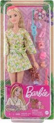 Barbie® zna da je najbolje priuštiti si najbolju njegu! Ovaj set lutke i dodataka slavi omiljeni način na koji se Barbie® puni energijom u toplicama! Barbie® Wellness lutka u toplicama odjevena je u preslatki kućni ogrtač s limunskim uzorkom i opremljena je svime potrebnim za opuštajući dan u toplicama, uključujući kupke, četke, svijeće i masku za oči – ima čak i masku za oči za svoje štene! Lutka ne može samostalno stajati. Boje i izgled proizvoda mogu se razlikovati. Dob 3+