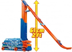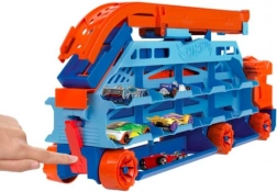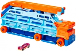 Doživite dvostruku dozu akcije s transporterom koji se pretvara u gravitacijsku stazu! Veliko vozilo na šest masivnih kotača sigurno prevozi i pohranjuje cijelu kolekciju, a jednim potezom pretvarate ga u spust od 60 cm za adrenalinske utrke.