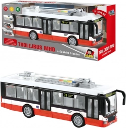 Ovaj detaljno izrađen trolejbus donosi djeci autentičan doživljaj gradskog prijevoza. Igračka reproducira najave stajališta na češkom (Glavni kolodvor, Gradsko kazalište, Zoološki vrt) te je upotpunjena atraktivnim svjetlosnim efektima. Zahvaljujući pogonu na inerciju, dovoljno je lagano pogurnuti trolejbus i krenut će naprijed.