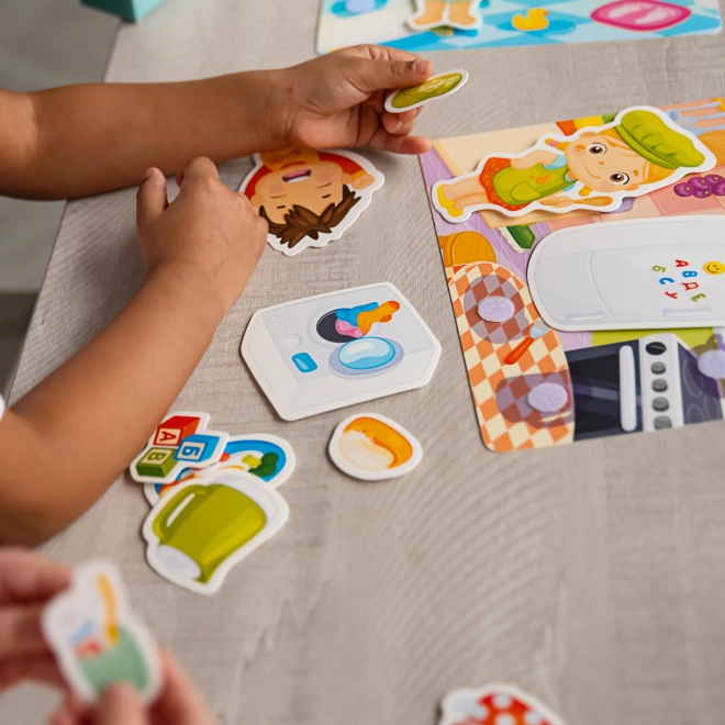 Velcro slagalice Dom na zabavan način upoznaju djecu s predmetima iz svakodnevice i njihovim pravilnim smještajem u kućanstvu. Zahvaljujući fleksibilnim plastičnim pločicama i dijelovima s čičak trakom, rukovanje je jednostavno i sigurno. Posebna površinska obrada ugodna je na dodir i potiče samostalnu igru.
