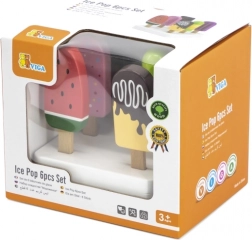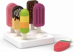 Drvena set za sladolede za djecu podupire kreativnu i imitativnu igru. Set sadrži 6 šarenih sladoleda i stalak za stilsko pohranjivanje.