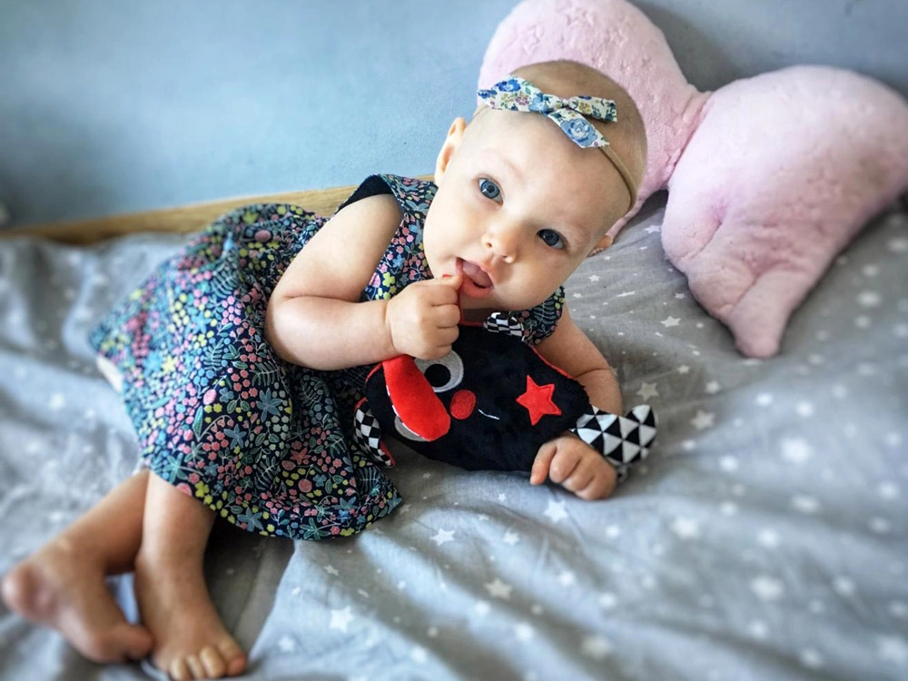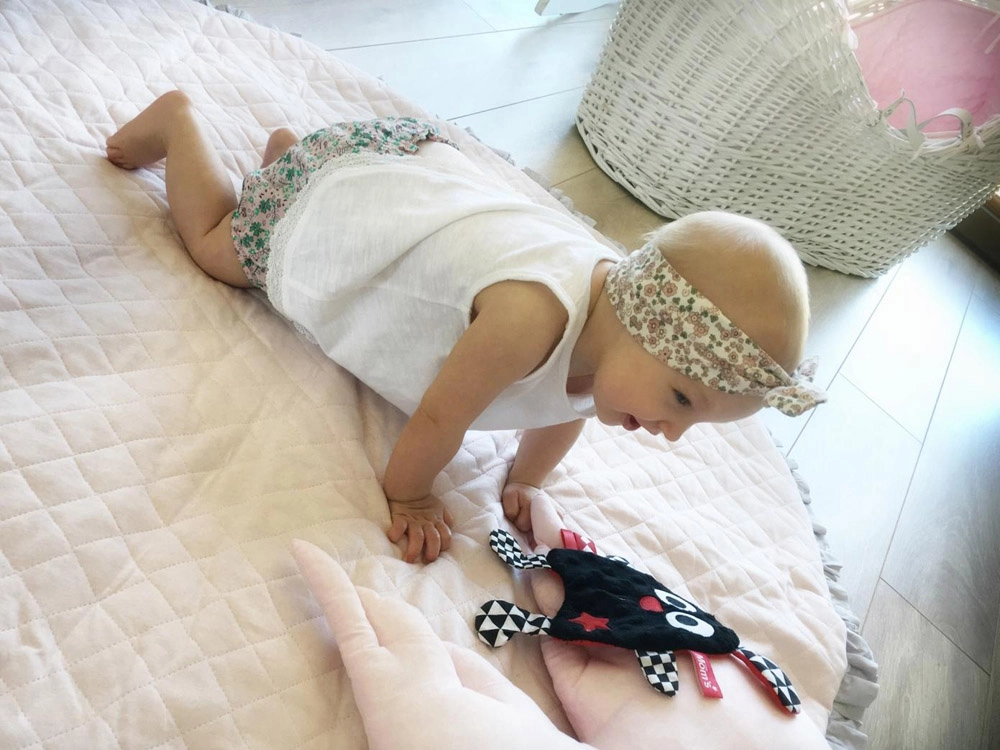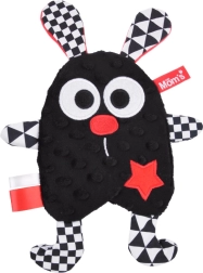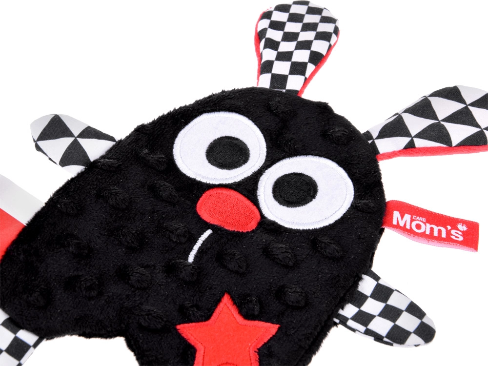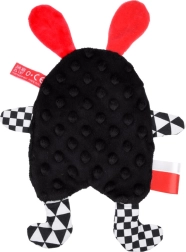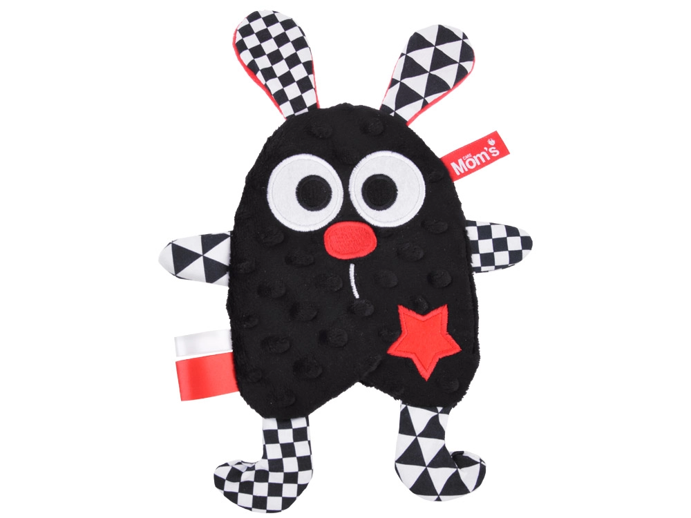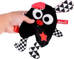 Presladak kontrastni šuškavi pratitelj, ušiven od mekih materijala, dizajniran s posebnom pažnjom na bebe. Idealan kao prva igračka od prvih dana života. Različite teksture materijala i crno-bijelo-crvene boje zajedno s geometrijskim uzorcima stimuliraju osjetila i vid djeteta.