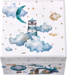 Kutijica je ukrašena motivima svjetionika, balona i zvijezda s romantičnim prizvukom, koji svakoj prostoriji daje bajkovitu atmosferu.