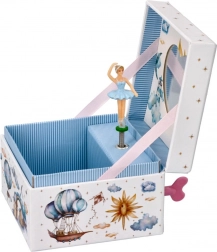 Ova glazbena kutija ukrašena je očaravajućim ilustracijama svjetionika, balona i zvijezda, što dodaje dašak mašte svakoj prostoriji.