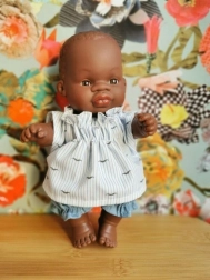 Set za lutke uključuje moderno odjeću s motivom brkova, idealno za lutku visine 21 cm. Ovaj set je savršen dodatak za svaku malu ljubiteljicu lutaka.