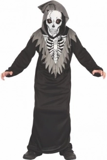 Strašno zabavan kostim za male ljubitelje Noći vještica i maškara – dječji kostur u veličini 120–130 cm. Sadrži habit s kapuljačom i kapuljaču za lice, idealno za karneval, zabave i školske priredbe. Lako se oblači, udoban je i spreman za puno zabave.