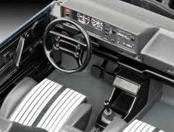 Set sadrži model njemačkog kompaktnog vozila VW Golf prve generacije, 6 osnovnih boja, kist i ljepilo.