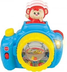 Fotoaparat s iskačućim majmunom je nevjerojatna igračka za djecu od 9 mjeseci, koja kombinira zabavu i učenje. Ovaj igraći fotoaparat s raznobojnim svjetlima i zvukovima idealan je za razvoj osjetilnih sposobnosti djeteta.