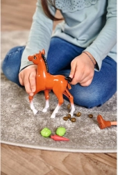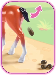 Lutka Steffi s dražesnim ponijem koji zabavlja svojom posebnom funkcijom. Kada se rep pomakne u stranu, ponij obavi nuždu. Set sadrži i pribor za njegu ponija.