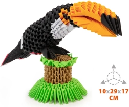 Origami 3D Tukan pruža terapeutski učinak na razvoj i razmišljanje djece. Sklapanje papira priznati je način za poticanje kreativnosti i motoričkih vještina. Zahvaljujući jedinstveno dizajniranim oblicima i jasnim linijama za preklapanje moguće je stvoriti osnovne module u tri jednostavna koraka, koji se potom, bez potrebe za korištenjem ljepila, spajaju u gotov model.