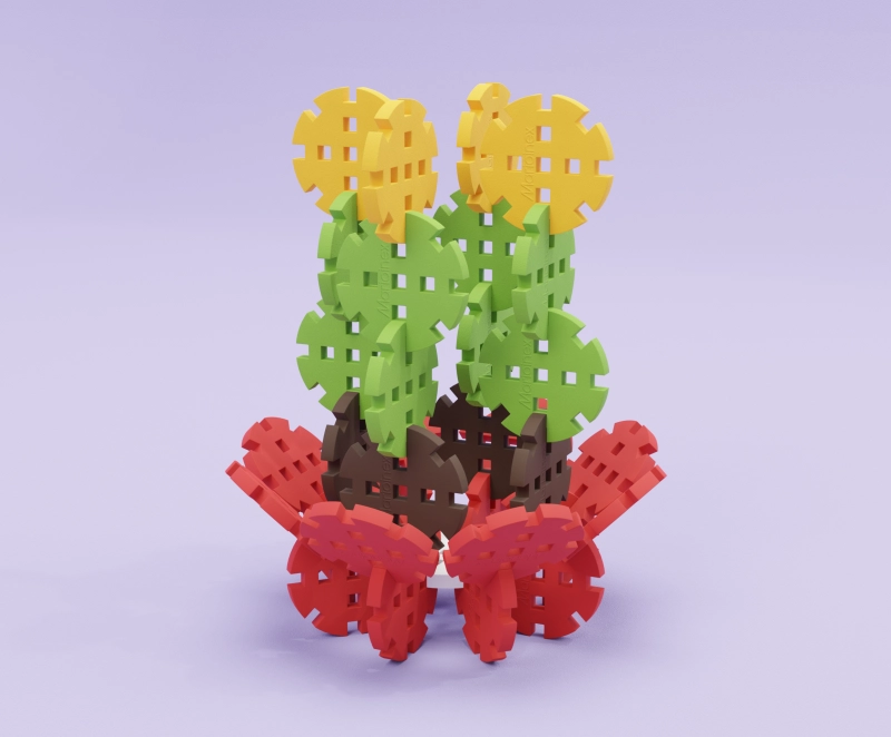 Konstruktivni kotačići Mini inovativan su građevni set koji spaja zabavu i učenje. Poseban oblik kotačića s izbočenjima omogućuje izradu pokretnih mehanizama, prijenosa i originalnih 3D konstrukcija. Djeca prirodno uvježbavaju finu motoriku, logičko razmišljanje i prostornu maštu – i to sve sigurno, zahvaljujući mekom i elastičnom materijalu.